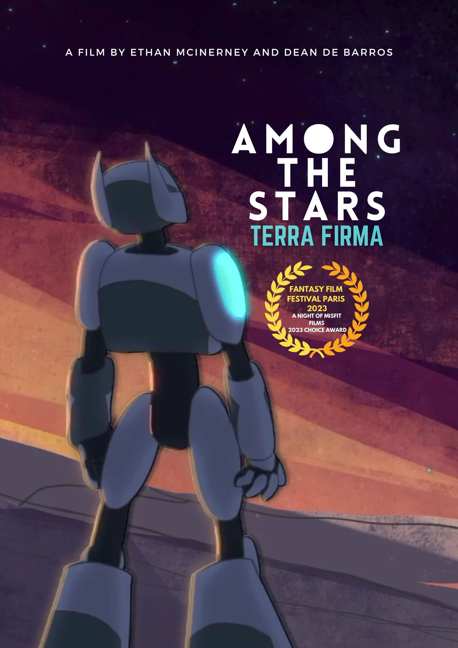A sentient robot is sent to leave the Earth to find a new home for humanity - finding its place as it prepares to leave the planet. This short film tackles themes of finding your place of belonging and purpose. Among the Stars: Terra Firma is a collaboration between trumpeter and media composer Ethan McInerney and animator Dean de Barros, reflecting on their pursuits to find their place in the world.