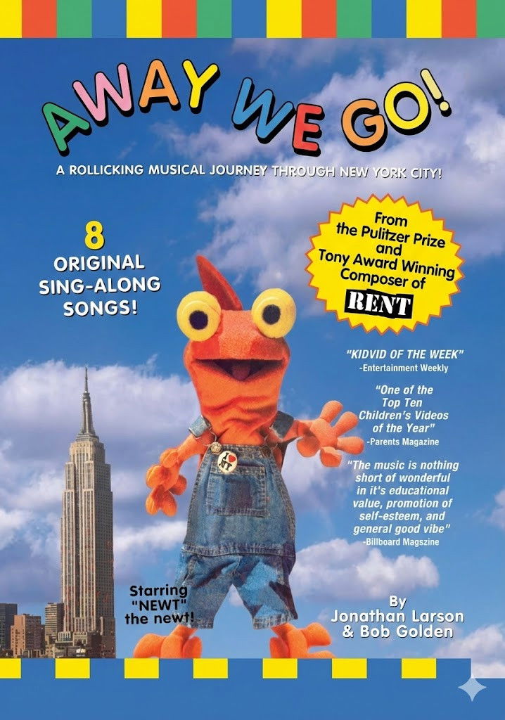A musical introduction to various forms of travel - with the lovable puppet Newt the newt as a guide. A delightful children's musical video by Jonathan Larson, Pulitzer prize-winning creator of blockbuster Broadway hit RENT, and Bob Golden, noted composer for children's TV shows like Sesame Street and Lambchop's Play-Along. Join Newt and his friends Casey and Samantha as they sail past the Statue of Liberty on a ferry, take the "checker" taxi cab down Broadway, ride a bus, fly a 727 jet, and more! Kids (and parents) will have the time of their lives as they enjoy the sights and the can't-help-singing-along music!
