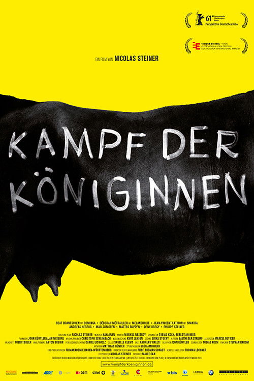 Battle of the Queen is a film from and about rural Europe, capturing a timeless cultural event: a series of head-to-head fights of cows set in the valley in sunny Southern Switzerland, nestled amongst the Alps. The fights are sudden snorting seesaws, explosions of mass and muscle, archaic and wild spectacles. We follow three concurrent story lines: an anxious farmer with his beloved contender, a neurotic unemployed reporter from Zurich coming to find a story, and a gang of adolescent boys on mopeds trying to catch a pretty girl's eye. The festival is a balancing act between fascinating tradition and modernity. This black and white film serves as both an exciting visual treat and a long overdue documentation of a fascinating Swiss tradition.