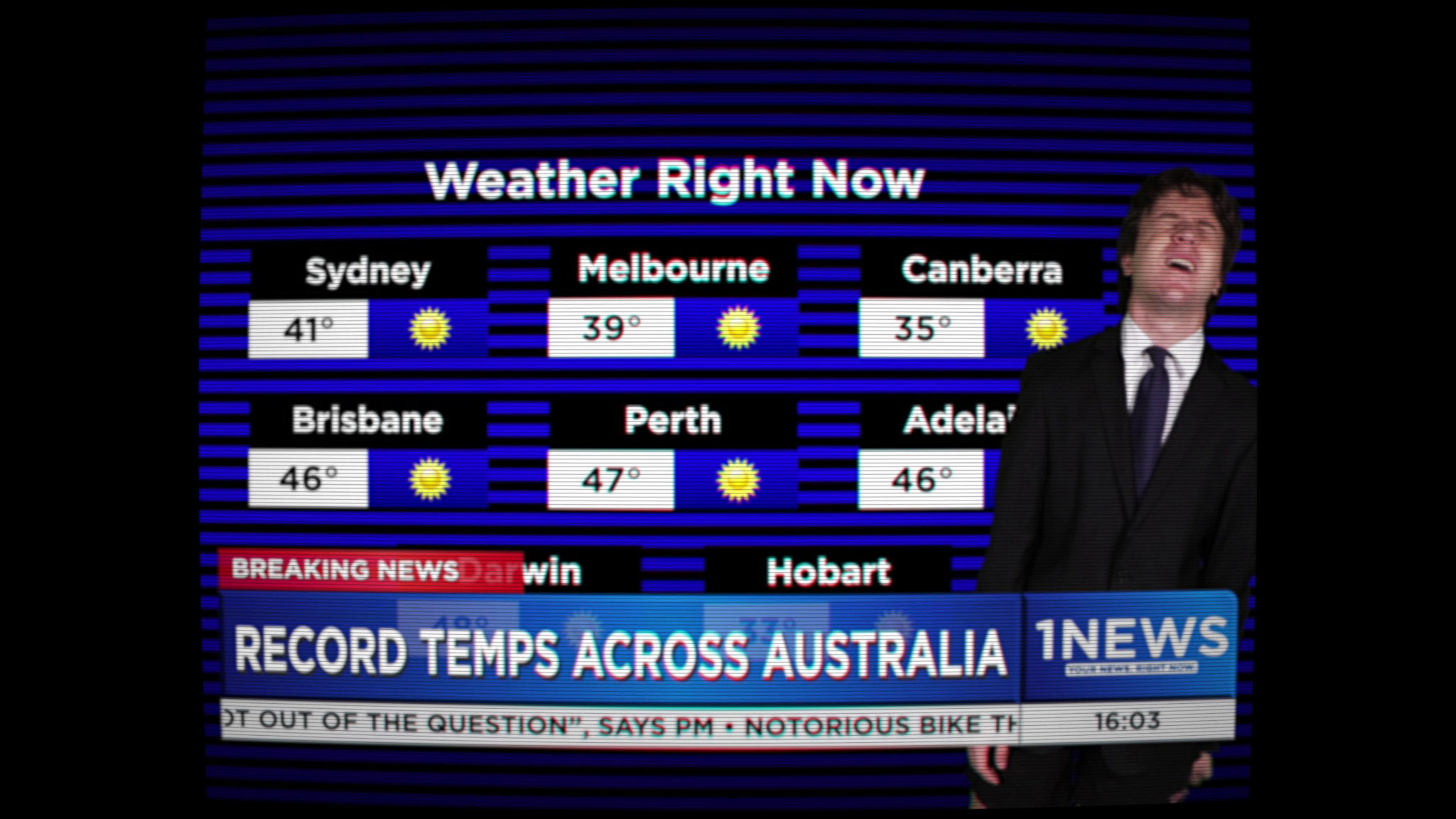 A normal broadcast is interrupted by breaking news: a meteor is headed directly towards the news station reporting on it.