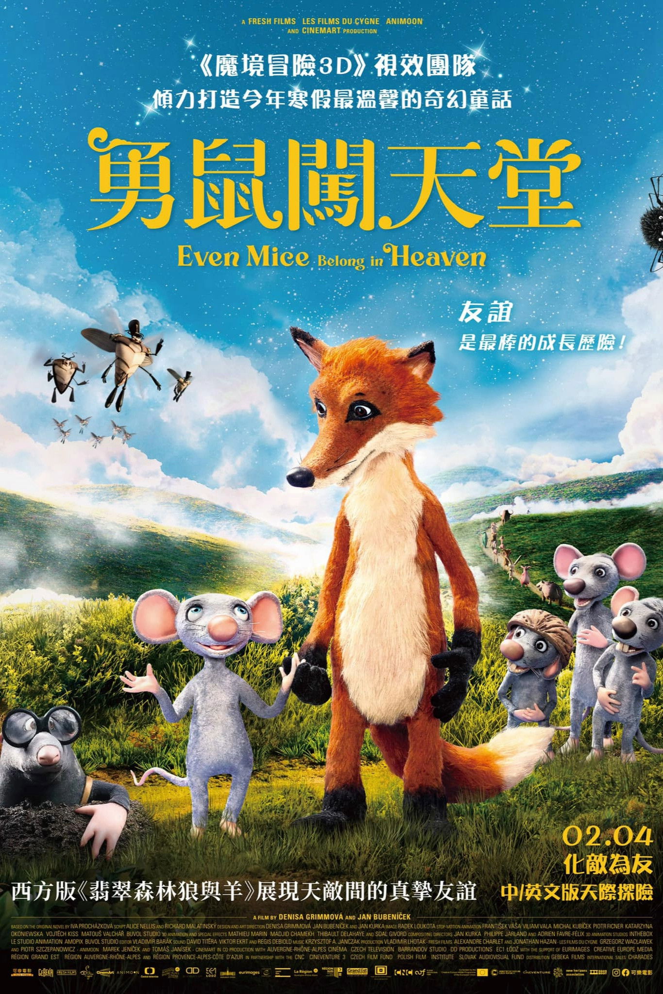 Whizzy is a little mouse, Whitebelly is a fox. They are naturally mortal enemies. One day, after an unfortunate accident, both meet in animal heaven. Together, they will embark on a fantastic journey and discover friendship can overcome everything.