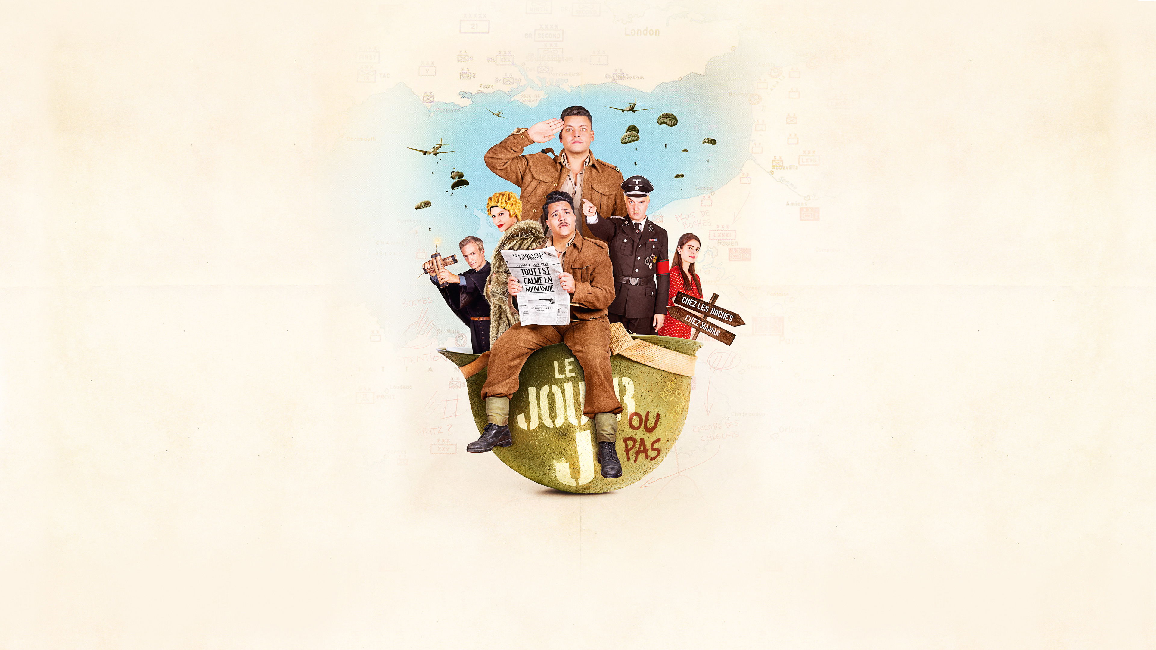 June 1944. Europe is torn apart by war, and preparations are underway for the Normandy landings. Denis Porte continues his daily work with dedication at a British military base... which is fake. His mission: to move fake soldiers around every day and thus deceive the enemy. In the Porte family, there is a tendency for fathers and sons to die as heroes for France. So there is no question of Porte taking the slightest risk for his mother. Looking after a fake base is the most she will tolerate for her son. But after meeting Sami, an Algerian doctor who dreams of meeting De Gaulle, they decide during a drunken evening to take part. They set off bravely (and with quite a few drinks under their belts). Except that they don't have the right date or the right place. Add to that a hero who doesn't want to expose himself to danger. On D-Day, or almost...