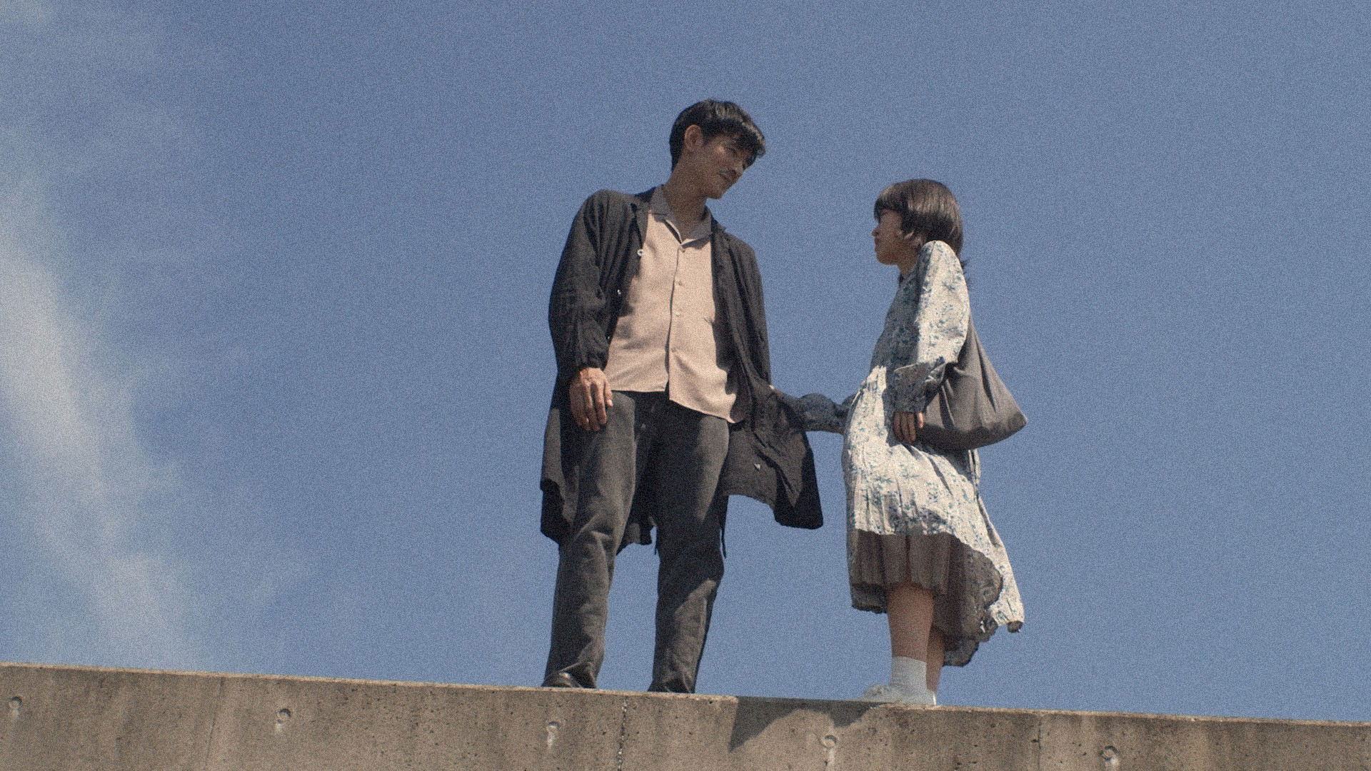 Momo and Todo are two strangers who meet in a small bar, and walk hand in hand while singing a children's song. They end up having sex and sleeping outside. As they wake up the next morning, Todo compares their situation to a "michiyuki", a lovers' elopement that ends in a double suicide. Both struggling with a painful past, they start to make their way towards the sea, not really sure whether they want to live or die.
