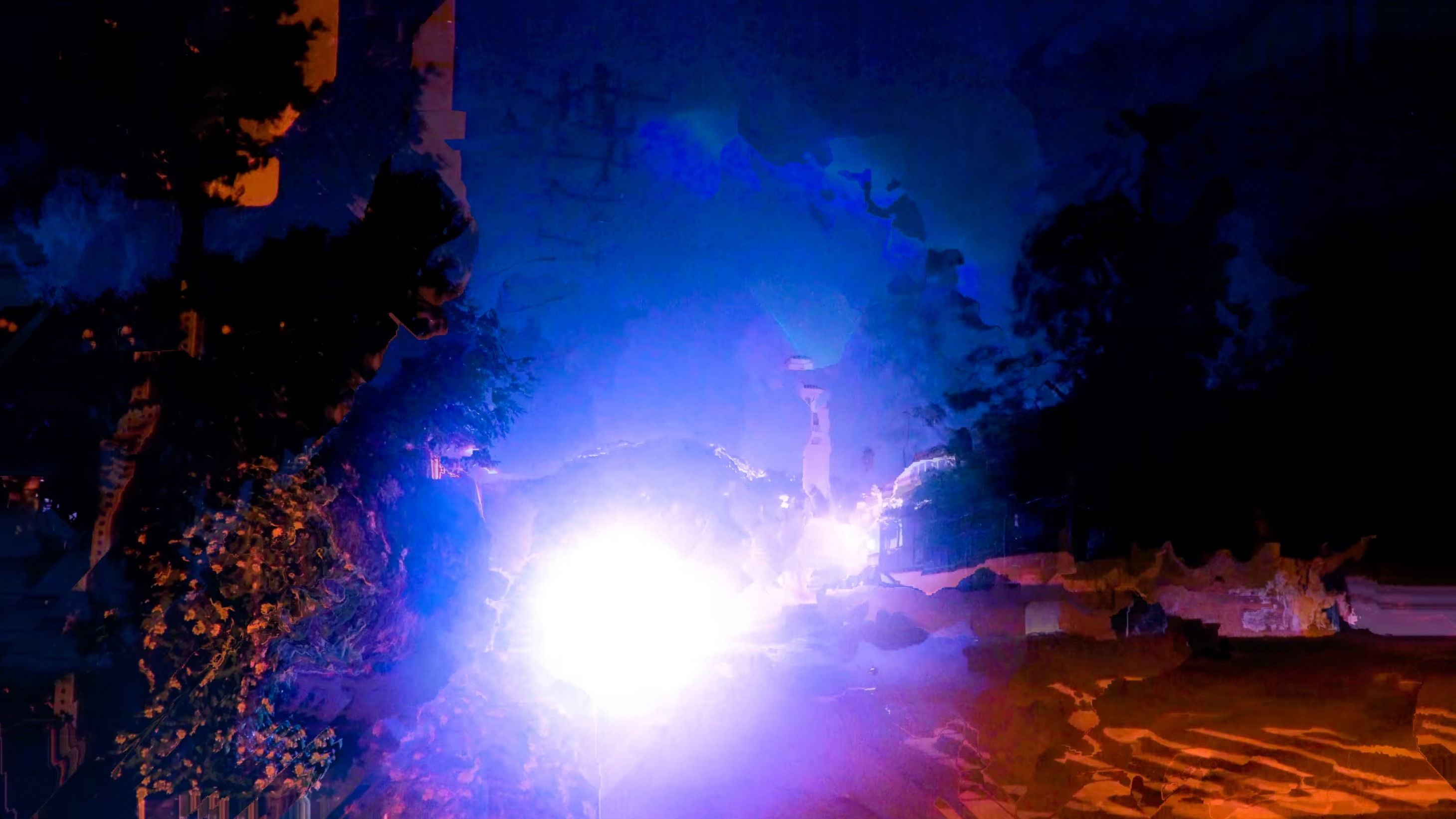 A walk through a section of a town at night