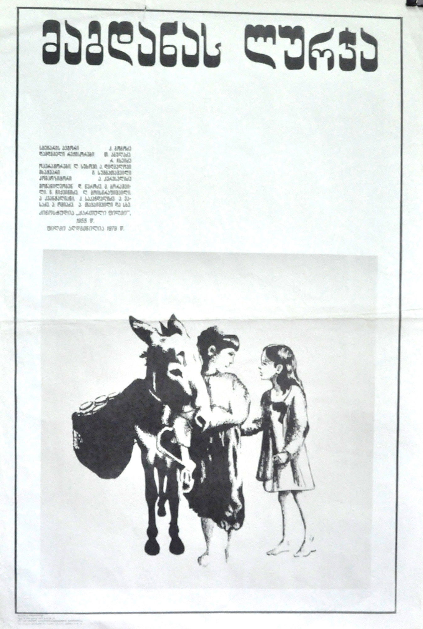 This chamber drama is set in Georgia on the turn of the 19th and 20th centuries. A simple peasant family makes its living by selling yogurt which the Magdany widow takes every morning to the town market. Once, in their mother’s absence, the children – six-year-old Mikho and three-year-old Kato – found an abandoned donkey on a road leading to their village. The foundling was fed, tended, and the moment the donkey opened its big, tender eyes, it was named “Lurdja”, which means “blue-eyed”. Surrounded by love and care, the donkey became a big help in the poor household. But this idyll was not to last long…