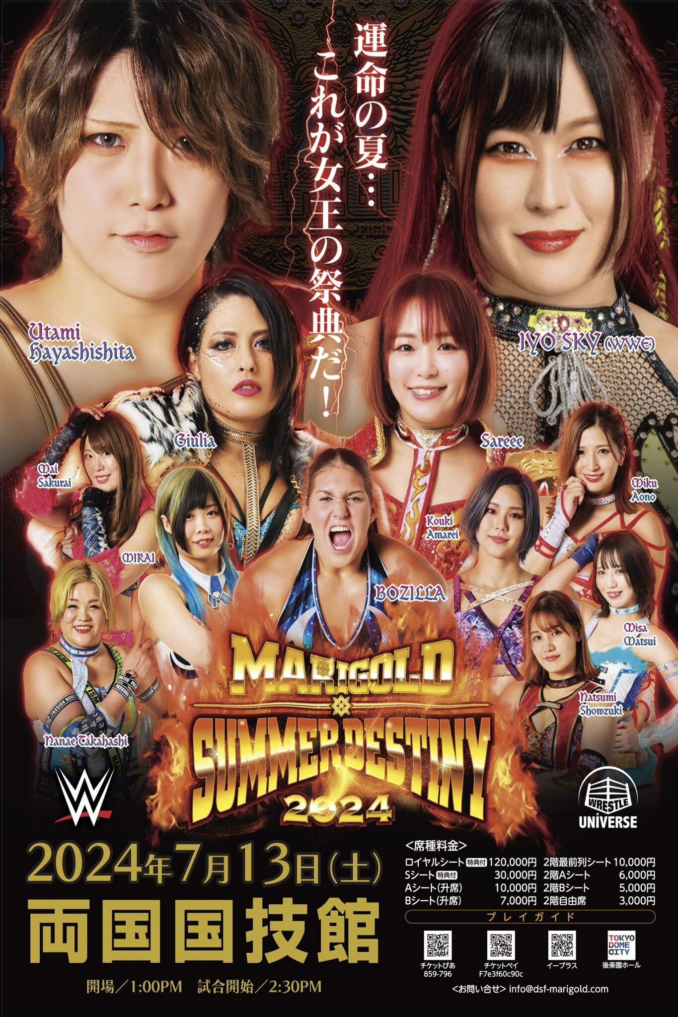Summer Destiny 2024 was a professional wrestling event promoted by Dream Star★Fighting Marigold. It took place on July 13, 2024, at Ryōgoku Kokugikan in Tokyo, Japan, and aired globally on CyberFight's video-on-demand service Wrestle Universe as a pay-per-view (PPV). It was headlined by Giulia and Sareee battling for the inaugural Marigold World Championship, as well as a featured bout between Utami Hayashishita and WWE's IYO SKY.
