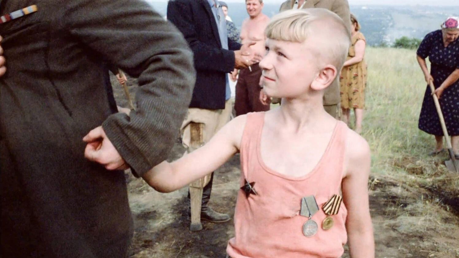 Sergei and Andrei are walking through a city park and see that a film shoot set just post World War II is taking place . They climb over the park fence to get a better view but hit some cable lying on the ground and find themselves in the past - on May 8, 1949, a day which they seem doomed to relive over and over again.