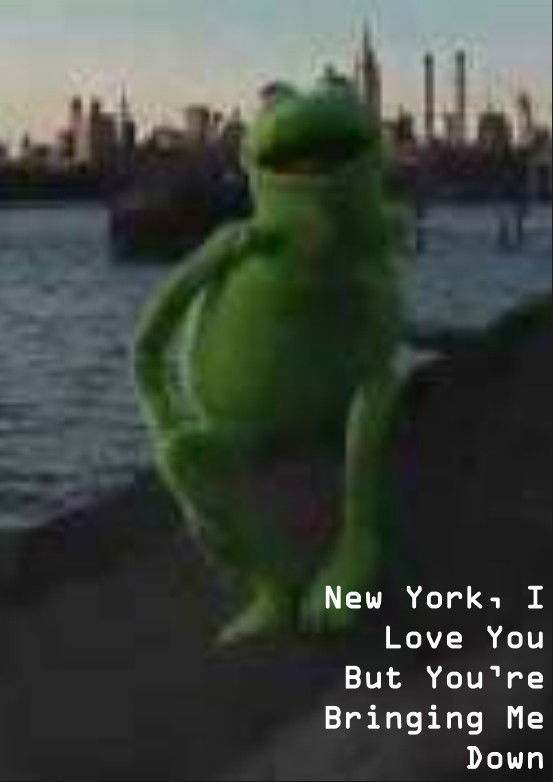 Kermit the Frog sings "New York, I Love You But You're Bringing Me Down" in New York City.