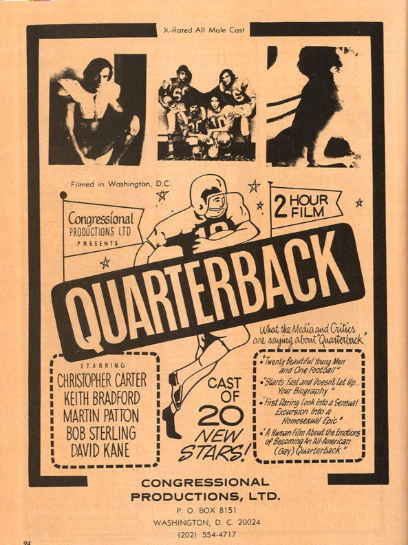 Football star quarterback Randy Davis' sexual escapades in Washington DC.