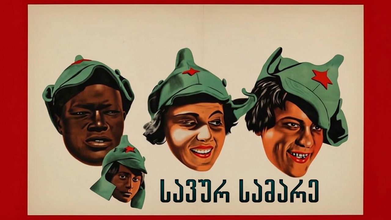 At a military demonstration Red Imps: Misha, Duniasha and Tom Jackson bring a captured enemy, dangerous Makhno.