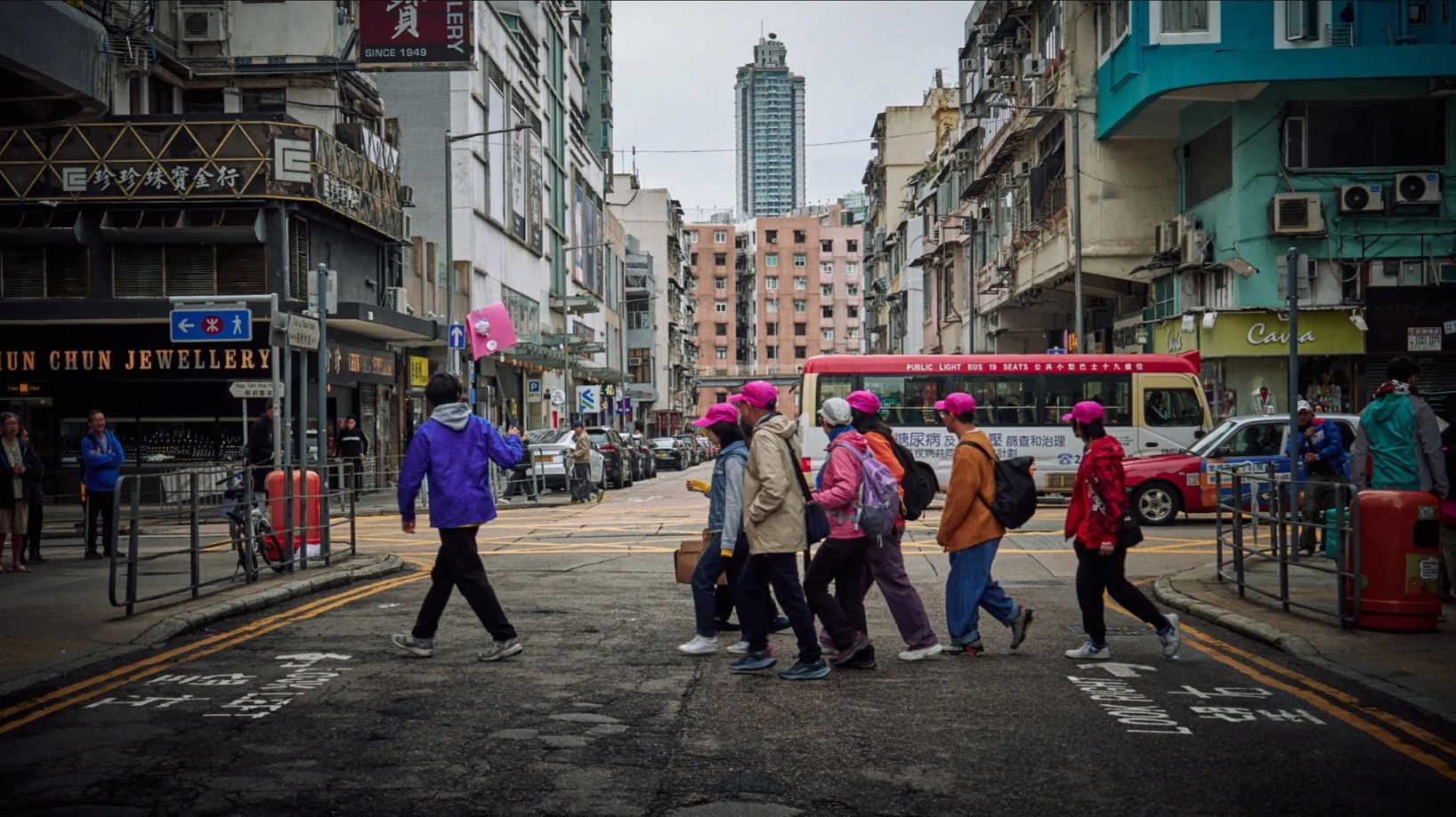 Panning from a tour guide testing his microphone, to tourists deciding on a cafe, to a camera operator hurriedly scouting for locations, this comedic single-take filmed from a rooftop in Kowloon City, Hong Kong, moves between rehearsed, reenacted, real, and all the way back again. Who’s watching who, and if everyone is both watching and performing, who gets to frame the truth?