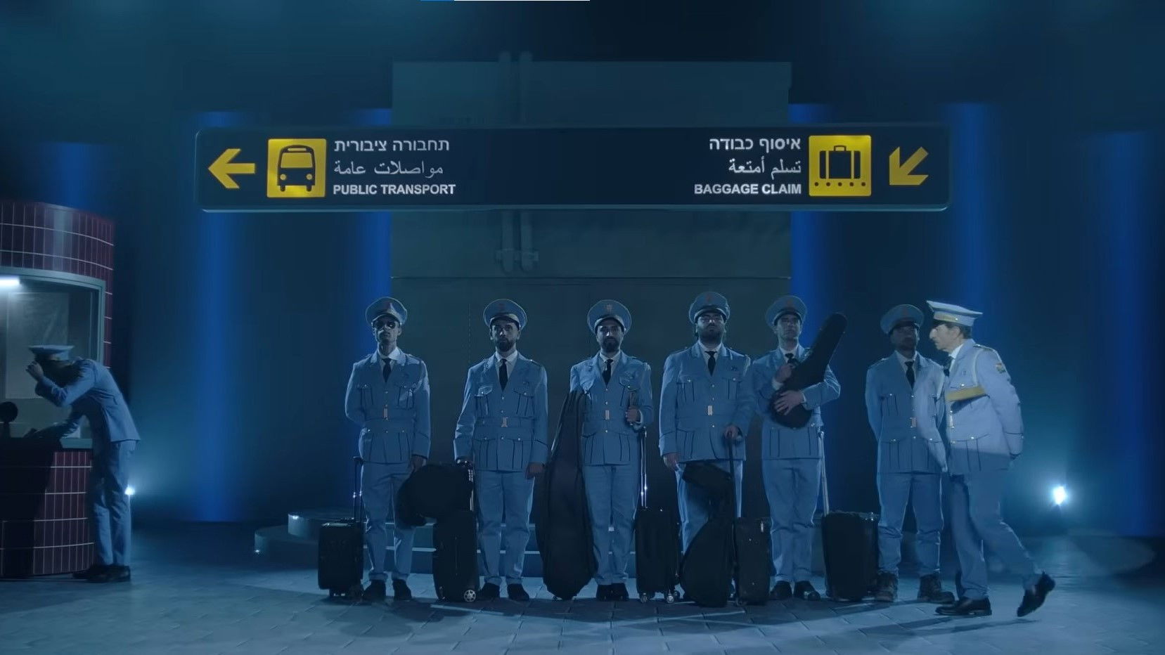 A small Egyptian police band travels to Israel to play at the inaugural ceremony of an Arab arts center, only to find themselves stuck in the wrong town and forced to spend a night with the local people.