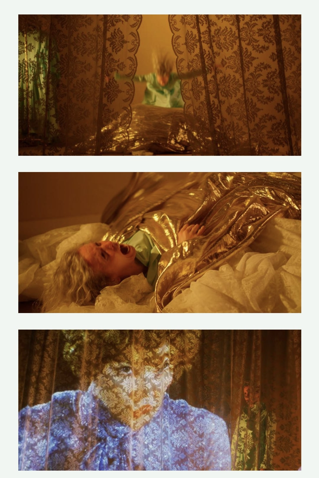 An exquisitely shot insight into dance, dramaturgy and performance featuring dancer Michelle Heaven. Limbs emerging from shimmering fabric, a torso draped in silk, gilded cloth and bodysuit. Find yourself enveloped by this cinematic peek into the multi-artform work The Prelude by Phillip Adams’ BalletLab and US choreographer Walter Dundervill.