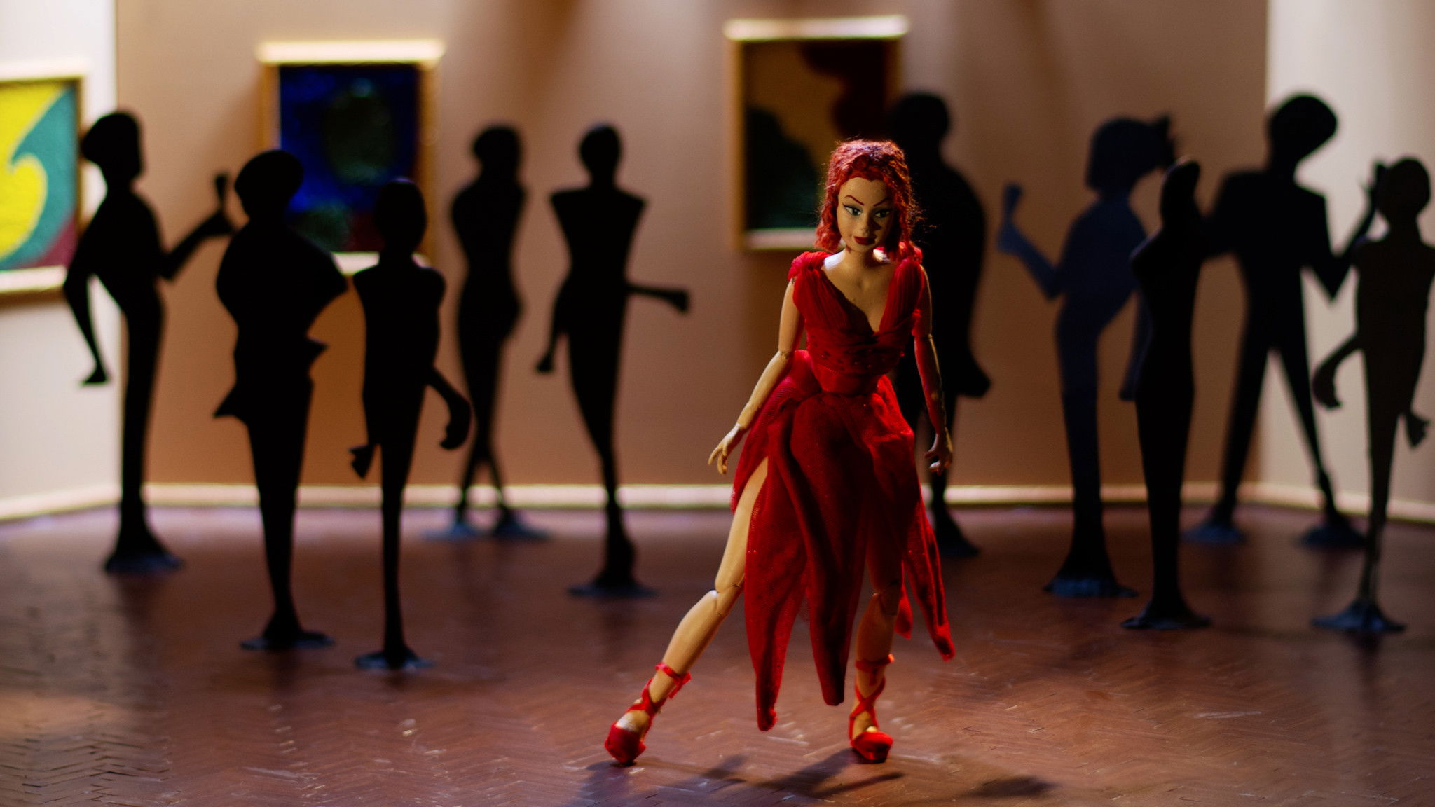 A fearful composer writes in his typewriting machine and an intimidating pianist cat plays his music during the magnificent show of Marita, the dancer.