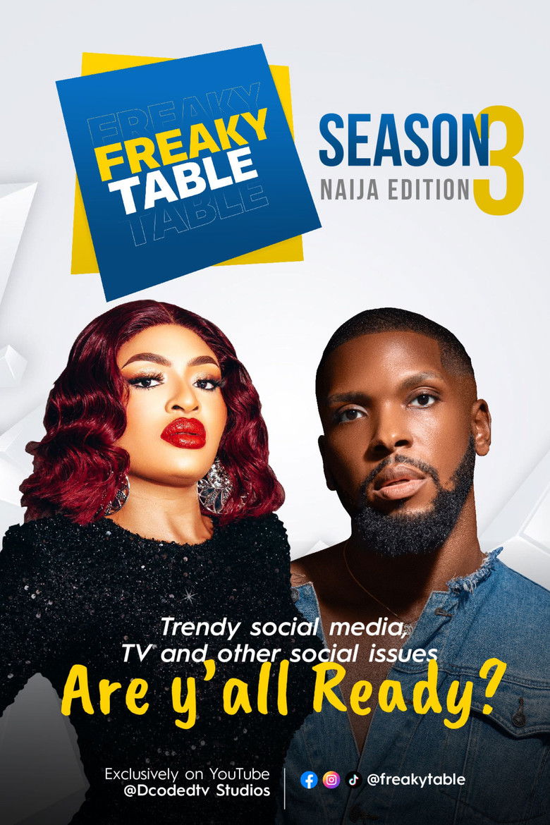 "Freaky Table" is an English-language talk show that creatively fuses social media, cultural trends, and television, offering a unique platform for in-depth discussions on diverse topics such as film, music, and contemporary societal movements. The show features two or sometimes three co-hosts who engage in lively, insightful, and often playful discussions, enriched by guest experts who add depth to each episode's theme. Launched in April 2020, "Freaky Table" was created by Joan Ngomba, who also serves as a co-host. The first two seasons were filmed in Cameroon, and the third season took place in Nigeria, wrapping up in September 2024. Executive produced by Wilson Ningamai Nyah for Niki Heat Entertainment, the show has successfully engaged young audiences with dynamic debates and expert guests. With over 120 episodes available in video format on YouTube and in audio format on all major podcast platforms, fans are eagerly anticipating Season 4, speculating on its filming location.