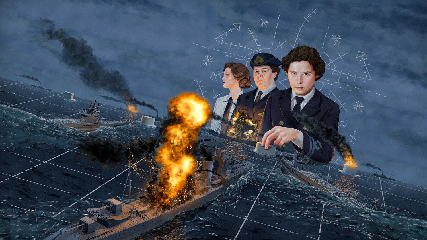 January 1943: Admiral Karl Dönitz, head of the Nazis’ U-boat fleet, has brought Britain to the brink of starvation by ruthlessly destroying close to a thousand of their merchant ships. If the transatlantic shipping route is cut off, the Allies will lose their last foothold in Western Europe. The Royal Navy turns to retired war gamer Gilbert Roberts. Roberts is to use war gaming to try to decipher and combat Dönitz’s tactics. To do this, he needs a team, but the Navy can’t spare any men. Instead, he risks the ridicule of high command by turning to the Women’s Royal Navy Service (WRNS) to war game the U-boats’ tactics. In partnership with Jean Laidlaw, one of Britain’s first female chartered accountants, and a small team of resourceful female mathematicians, Roberts acts out naval battles and games the U-boats’ moves on a linoleum floor, using chalk and wooden model ships.